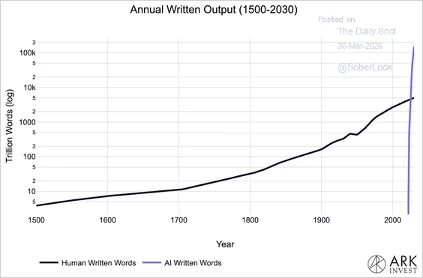 AI-written output exceeded human-written output in 2025.