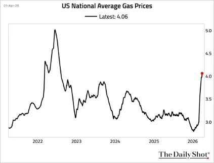 The US national average price for regular gasoline jumped further above $4 per gallon. The 30-day percentage increase is higher than after the Russia-Ukraine conflict.