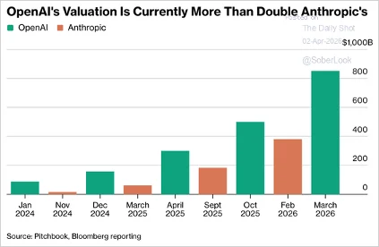 OpenAI now commands a $852 billion valuation. This chart puts that in context.