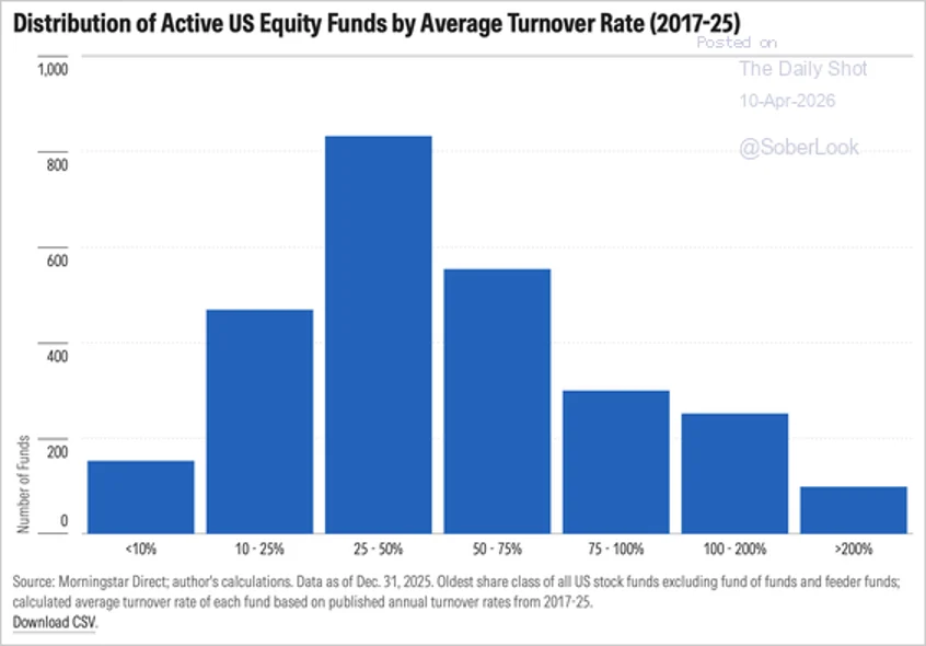 A typical active US stock fund manager turns over about half their portfolio each year.