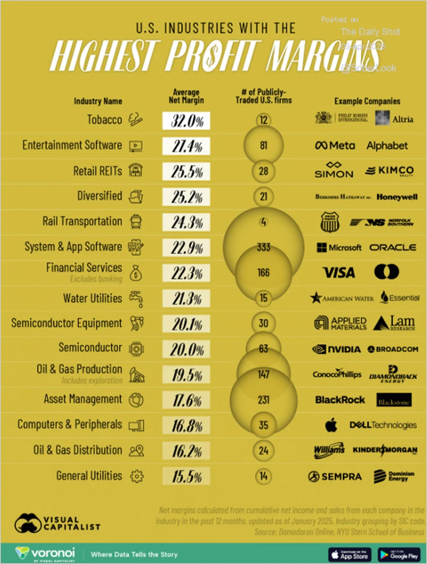 This chart shows the most profitable US industries.