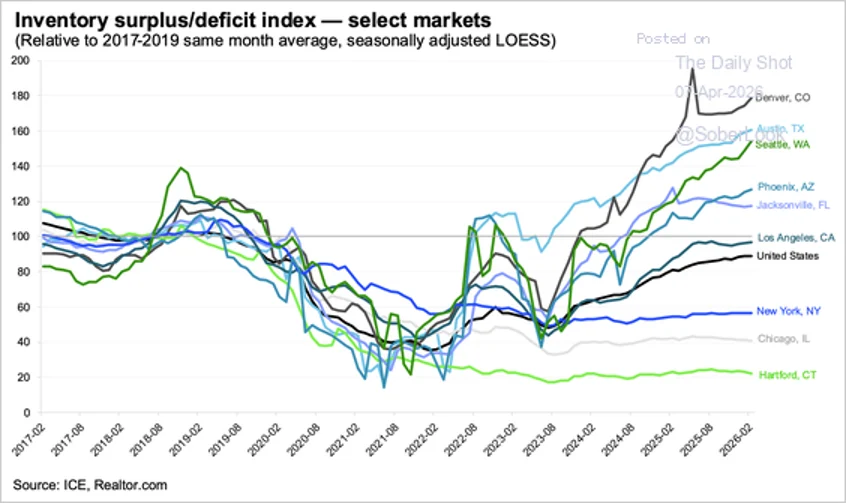 Housing inventory continues to improve nationally, but the pace is slowing. Denver, Austin, and Seattle have the highest inventory-to-sales ratio.